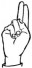 На ћирилици написано БЛАЖА БОНЏИЋ састоји се из 11 слова [?]. Исписано ћириличном једноручном азбуком за глувонеме: